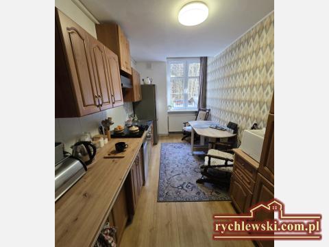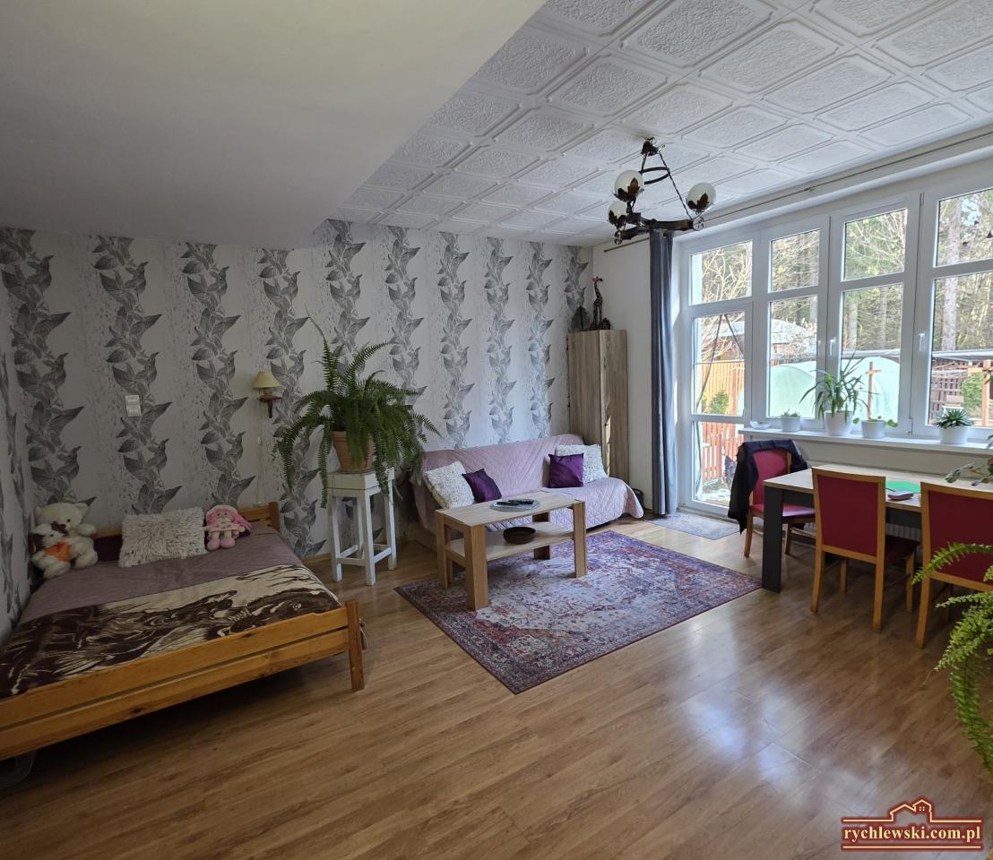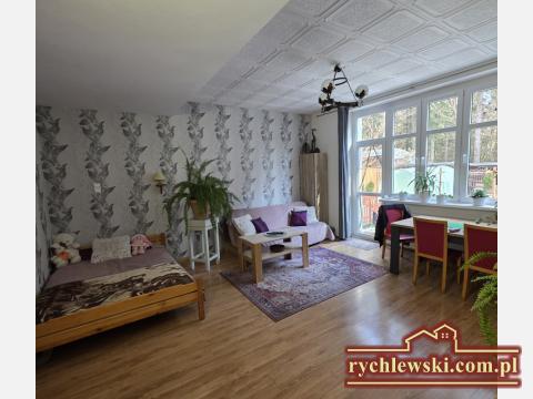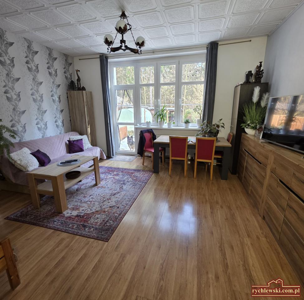 Przestronne 2 pokojowe mieszkanie z ogródkiem i garażem, położone w uroczym miejscu, w dzielnicy Piechowic, miejscowości Górzyniec. Usytuowane na parterze, kilku rodzinnego budynku mieszkalnego o powierzchni 74,60 m2 na którą składa się przedpokoj z szafa w zabudowie, duży salon z wyjściem do ogrodu, wyposażona i umeblowana kuchnia, sypialnia, garderoba, łazienka i piwnica. Dodatkowo wc i komórka lokatorska. Powierzchnia mieszkalna to 66,50 m2. Okna pcv, podłogi wyłożone panelami, ściany częściowo tapety. Ogrzewanie jak również ciepła woda z nowego, 2 letniego pieca na pelet ( bardzo ekonomiczny i wygodny system ). Media to prąd, woda z wodociągu i kanalizacja miejska - brak gazu. Czynsz z f. remontowym wynosi 400 zł. Wymieniony dach w budynku, nowa instalacja wodna i elektryczna na klatce schodowej, która będzie następnym etapem prac remontowych wspólnoty. Mieszkanie z dużym potencjałem, położone w budynku pod lasem do którego mamy bezpośreni dostep z ogródka, w którym znajduje się wiata, cześć warzywna z folią pod uprawę własnych warzyw i roślin. Duży wspólny teren dla mieszkańców na którym stoi garaż. Atrakcyjna lokalizacja, 20 minut spacerem od centrum Piechowic, 5 minut do przystanku MZK, 20 minut od PKP i 7 km od Szklarskiej Poręby. Idealne miejsce dla miłośników przyrody, otoczenia zielenią która daje spokoj i komfort mieszkania poza zgiełkiem miasta. Cena 270 000 zł do negocjacji. Nieruchomość do obejrzenia tylko w Naszym biurze Nieruchomości Rychlewski tel. 667219752